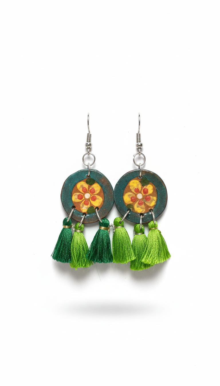Designed to be lightweight and easy to wear, these earrings blend artisanal tradition with a modern aesthetic. The hand-painted motifs and subtle textures reflect a deep connection to natural materials while remaining versatile enough for everyday outfits or statement looks.