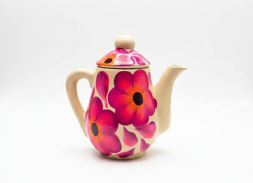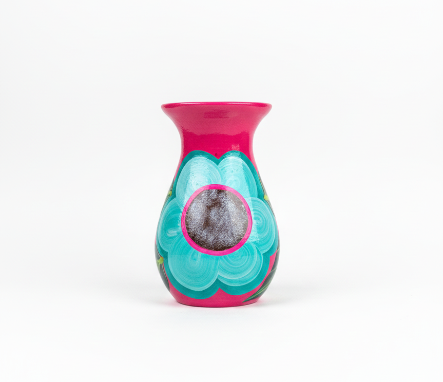 Each piece in this collection is handcrafted from natural terracotta clay and finished with bright, saturated hand-painted designs. Unlike more traditional earth-toned ceramics, these pieces stand out for their use of vivid colors, playful floral motifs, and dynamic patterns that reflect creativity, joy, and artistic freedom.